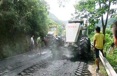 懷化市2013年的兩段冷再生工程分別是G320國道洪江段和S222省道靖州段,兩段工程總大修里程超過60公里。在項目調研階段,我公司會同河南隆裕工程公司經實地考察,認為兩段路雖屬干線公路,但路基的損壞較嚴重,路基強度屬中等強度,冷再生機施工強度不高,鑒于兩段路均屬丘陵山地,坡道多,彎道多,施工管理難度較大,需要加強現場管理。